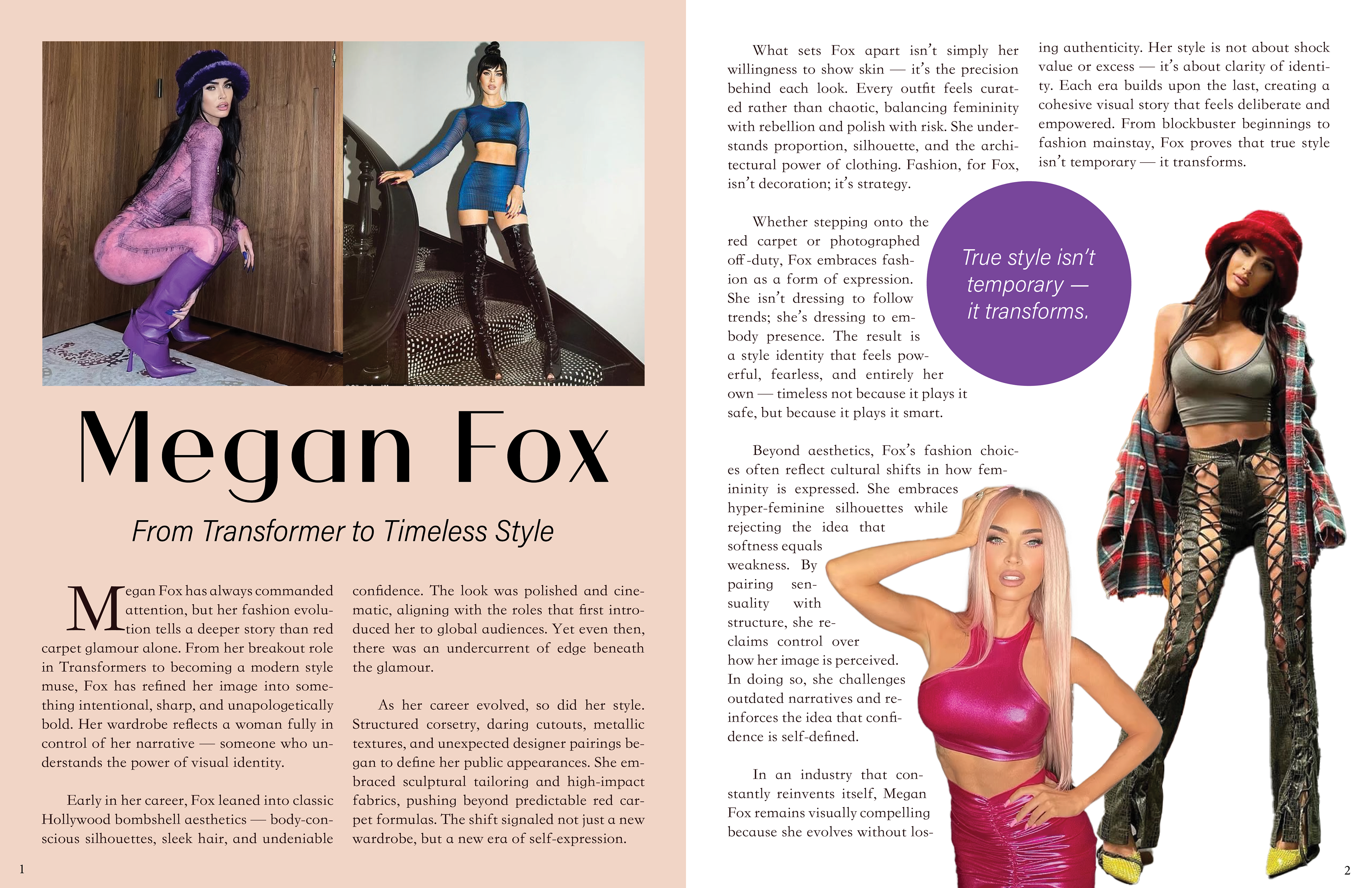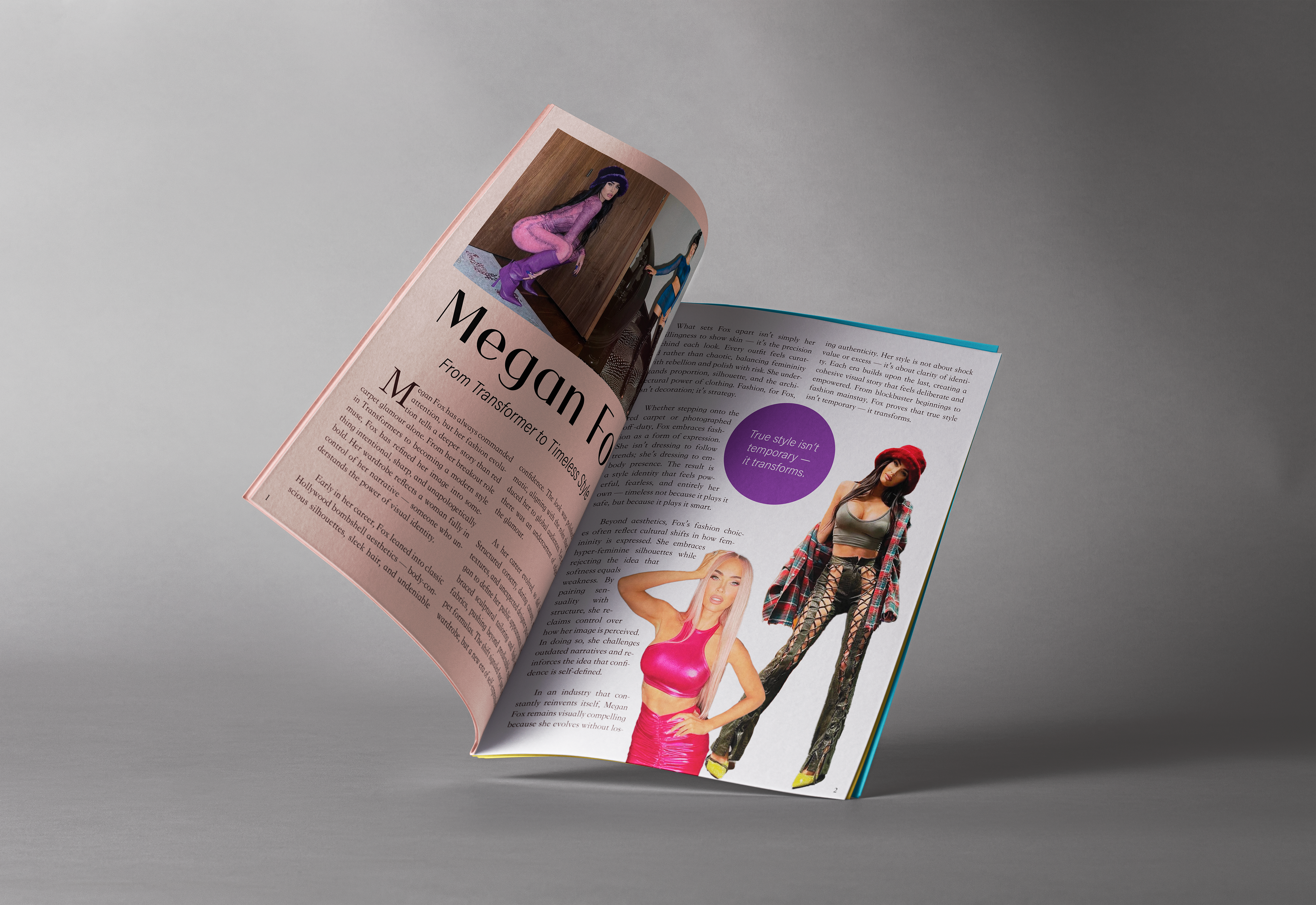 I designed a visually striking magazine cover featuring Megan Fox, along with a cohesive two-page spread using Adobe InDesign. Focused on bold typography, balanced layouts, and high-quality imagery to create a modern, engaging aesthetic. I managed the entire design process from concept to execution, ensuring brand consistency and readability.
